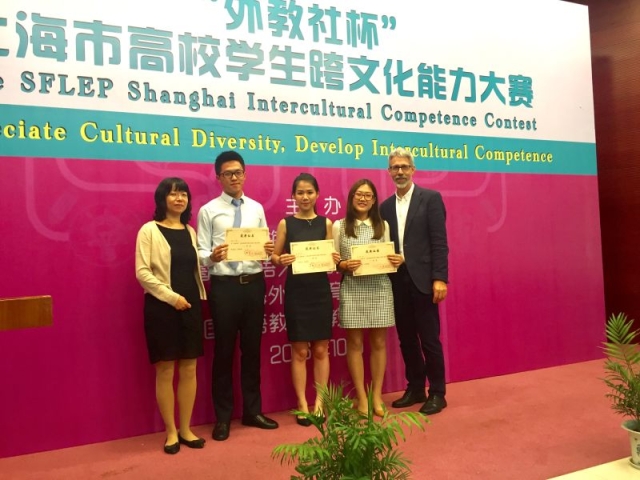 10月23日,由上海市外文学会,上海外国语大学跨文化研究中心,上海外语教育出版社,中国外语教材与教法研究中心主办,中国日报社21世纪英文报、上海广播电视台(RTS)以及上海外语频道(ICS)媒体支持的“外教社杯”上海市高校学生跨文化能力大赛圆满结束。在英语学院林玲副教授的指导下,英语学院李雪莹、钱王杰,国际教育学院周婉丽三位同学凭借在复赛与决赛中的优异表现,在首届上海市高校学生跨文化能力大赛中获得一等奖的佳绩。