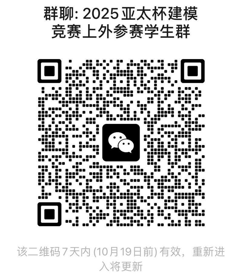 3. 论文要求及提交方式,请参见《2025年APMCM亚太地区大学生数学建模竞赛参赛规则》,官方网址如下:https://new.saikr.com/vse/apmcm/2025?type=notice&id=33634。