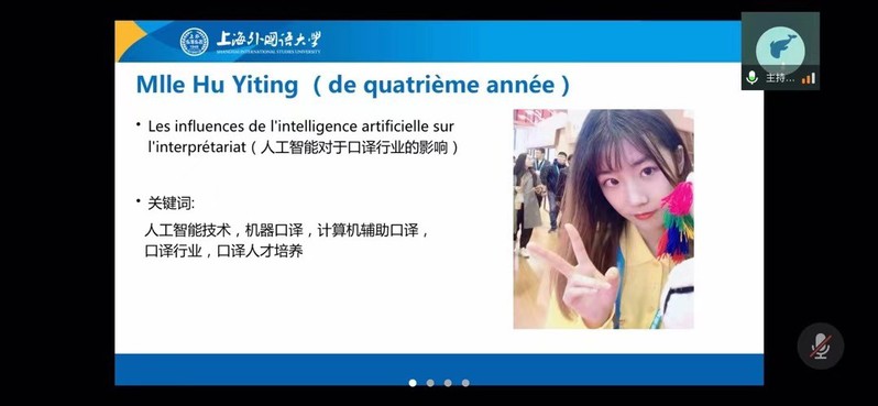 12月31日,由教务处主办、法语系承办的第二十一期云端学术角活动成功举办。本次活动以“面向未来:青年的责任与担当”为主题,由邱喆倩同学主持,邀请到李钰岭、胡一婷、王雨竹、谭紫琦等四位同学从文学、翻译、区域与国别研究等领域进行了生动地学术分享与交流。杨姗博士受邀担任点评嘉宾,对每一位同学的主题分享提出了自己的意见与建议,同时表达了对同学们的热切期望,希望大家能够再接再厉!