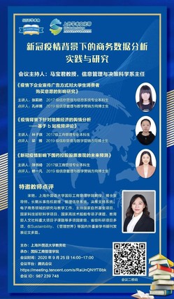 9月25日,由教务处主办、国际工商管理学院承办的第八期云端学术角活动成功举办。本次活动以“新冠疫情背景下的商务数据分析实践与研究”为主题,由国际工商管理学院信息管理与决策科学系主任马宝君教授主持,张莉艳、林子琪、顾书绮同学围绕这一主题进行了论文阐述和展示,三位信息管理与数字营销方向在读博士分别进行了点评,宋艳老师对同学们的主题发表作了总结点评,并与同学们进行了良好的交流互动。