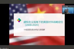 10月30日,由教务处主办、国际关系与公共事务学院承办的第十二期云端学术角活动成功举办。本期活动以“中美战略博弈”为主题进行了深入讨论,陈紫心、杨雨霏、贺筱麟、刘千歌等四位同学作主题发言。王联合教授对几位同学的汇报表示肯定,并对各位同学的研究分别提出了评价和建议。国际关系与公共事务学院本科教学负责人盛春红老师在活动中积极鼓励同学们多多参加学术活动,拓展学术交流。