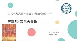12月11日,由教务处主办、语言研究院承办的第十八期云端学术角活动成功举办。本次活动的主题为“文学与影视作品中的语言学”,由姜懿、许瑞璇两位同学围绕活动主题分别作了精彩的报告,他们与参会同学和老师分享了自己的观点和见解,林皓老师对同学们的报告给予了高度评价和指导点评,并鼓励参加活动的同学们努力激发学术兴趣,不断提升学术水平。