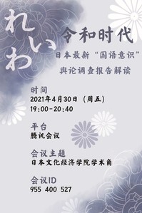 SISU云端学术角第二十五期活动由教务处主办,日本文化经济学院承办,将于4月30日19:00准时开启!本期活动以“令和时代日本最新“国语意识”舆论调查报告解读”为主题,期待您的积极参与!