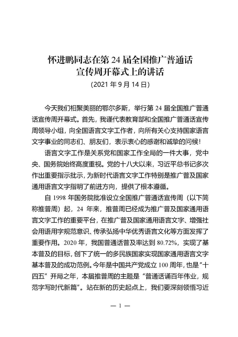 学习怀进鹏同志在第24届全国推广普通话宣传周开幕式上的讲话