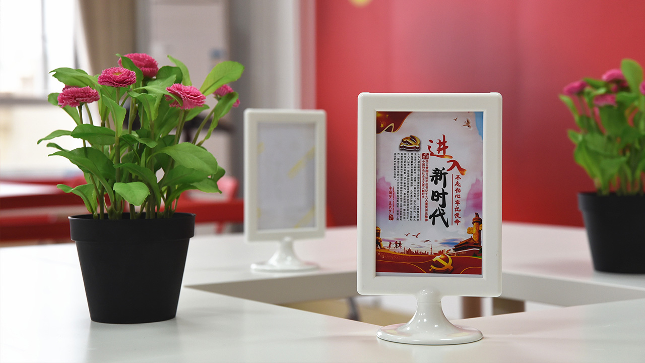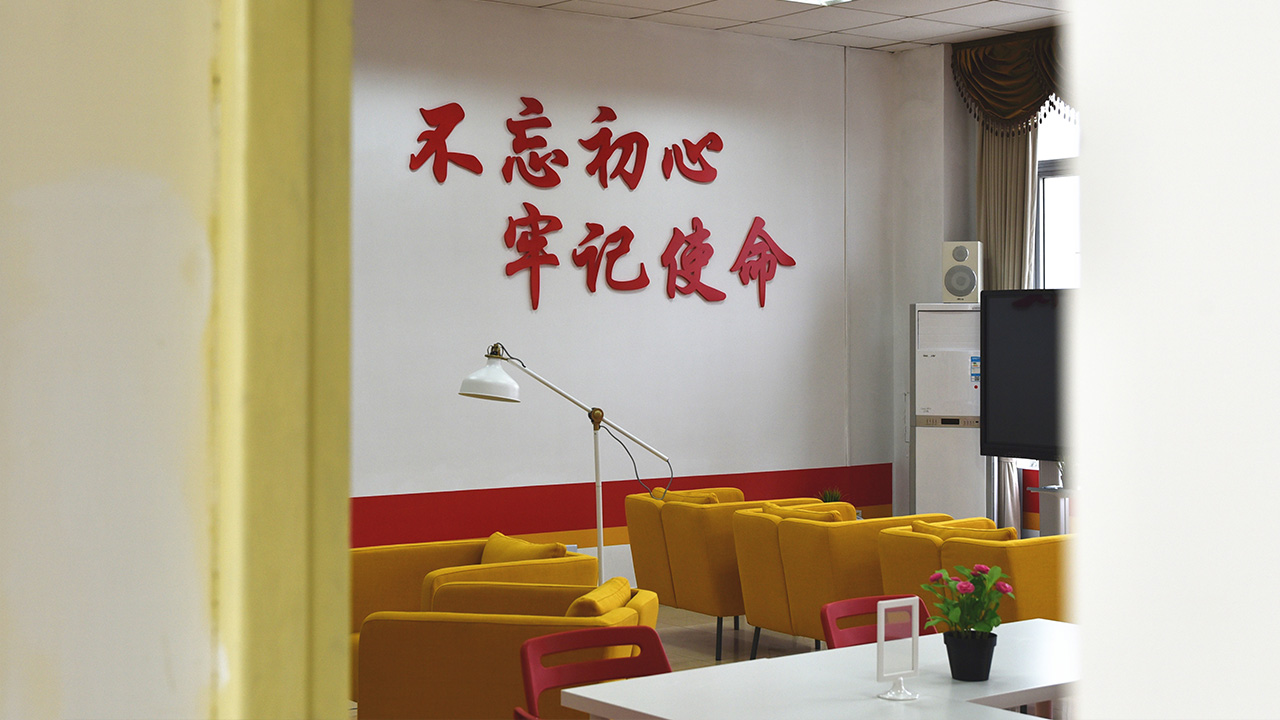 “党员之家”分为讨论区、阅读区、影音区三大功能模块。讨论区可供党支部开展小组讨论、群众座谈、党员大会、主题党日和组织生活等。阅读区的书架上陈列了“英华党建书单”推荐的50本党建书目,也提供了舒适的沙发供大家阅读使用。影音区配备了LED屏电脑,可供组织观看党和国家重要活动直播、播放各类专题学习影片。承载十九大报告内容节选的立式相框、鼓励大家“讲好中国故事”的演讲台、散发温暖光束的阅读落地灯等都营造了庄重又温馨的学习环境。