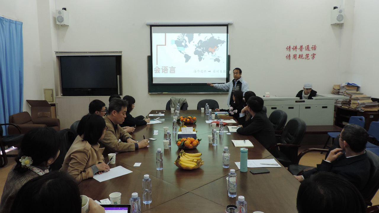 11月28日上午,北京大学外国语学院副院长付志明教授、副院长吴杰伟教授、北京大学图书馆党委书记郑清文副教授(原北大外院副书记兼副院长)、北京大学外国语学院教务办主任崔桂红、团委书记王艳超等一行9人到访上海外国语大学东方语学院调研教务工作和学生工作。东方语学院院长程彤教授、党总支书记王一林、副院长陈杰教授、党总支副书记李燕、工会主席兼办公室主任王雷、院长助理杨阳副教授、教学秘书秦韶云、张榕出席见面交流会。