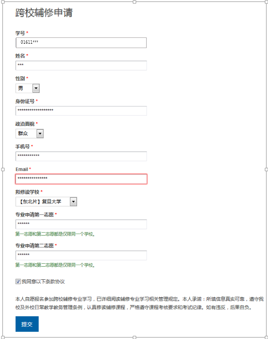 4.准确按照招生计划填写拟修读学校和专业,以免造成因学校或专业填写错误导致报名失败(招生计划请点击查看:东北片各高校、松江大学园区各高校)。