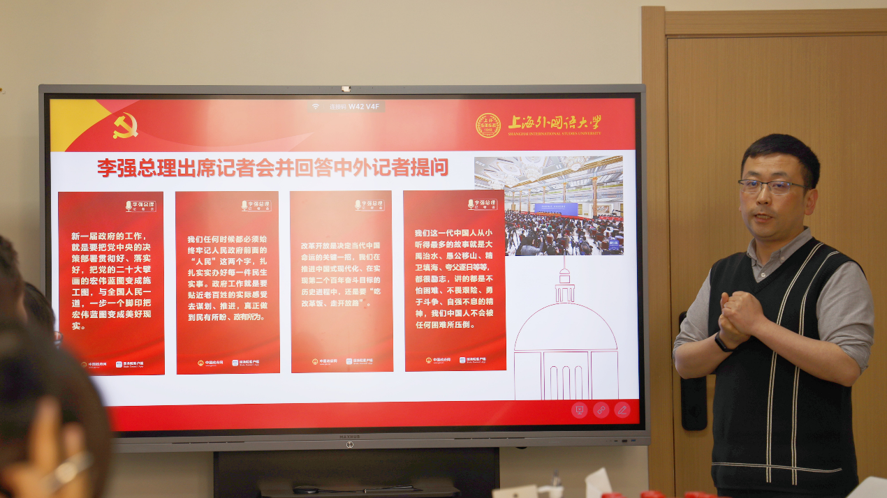 4月7日上午,中共上海外国语大学机关第十七支部(教务处、教材处)召开专题学习会,集中学习十四届全国人大一次会议和全国政协十四届一次会议精神。教务处、教材处党员出席会议,党外人士列席会议。支部副书记徐旻主持会议并领学。