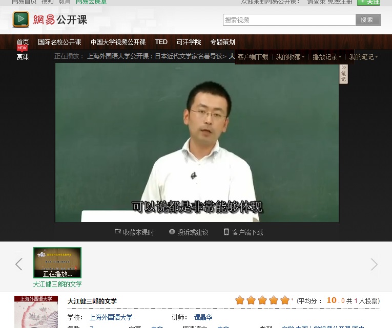 近日,由我校谭晶华教授领衔主讲、日本文化经济学院高洁、徐旻副教授参与讲授的《日本近代文学家名著导读》课程(全7讲)由“爱课程”网站正式发布(http://www.icourses.cn/viewVCourse.action?courseId=ff8080813ff49e1f013ff5c39745006c#),同时,网易公开课、央视公开课也进行了同步。成为我校第一门全面完成并正式上线的“中国大学视频公开课”。