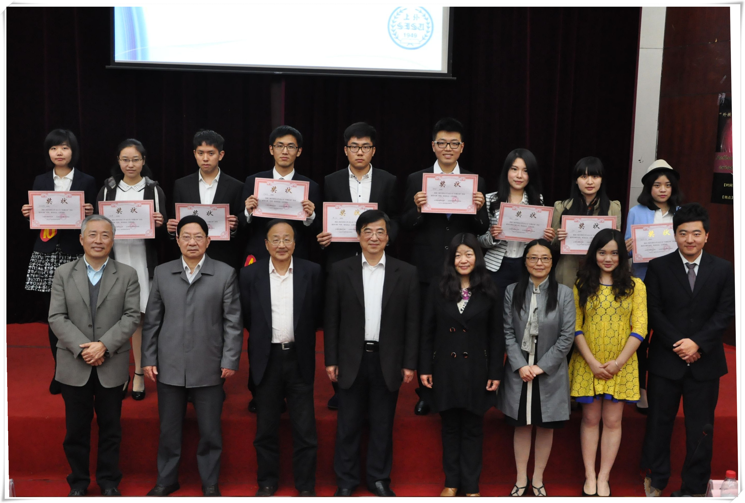 决赛演讲的主题是“Activate Your Passion, Create Your Career”,沿用往届规则,分主题演讲、即兴演讲和专家提问三个环节。决赛邀请到了我校梅德明教授、虞建华教授、李维屏教授、李基安教授和王雪梅教授担任评委,上海外语教育出版社常务副总编严凯和教务处副处长赵美娟受邀出席。