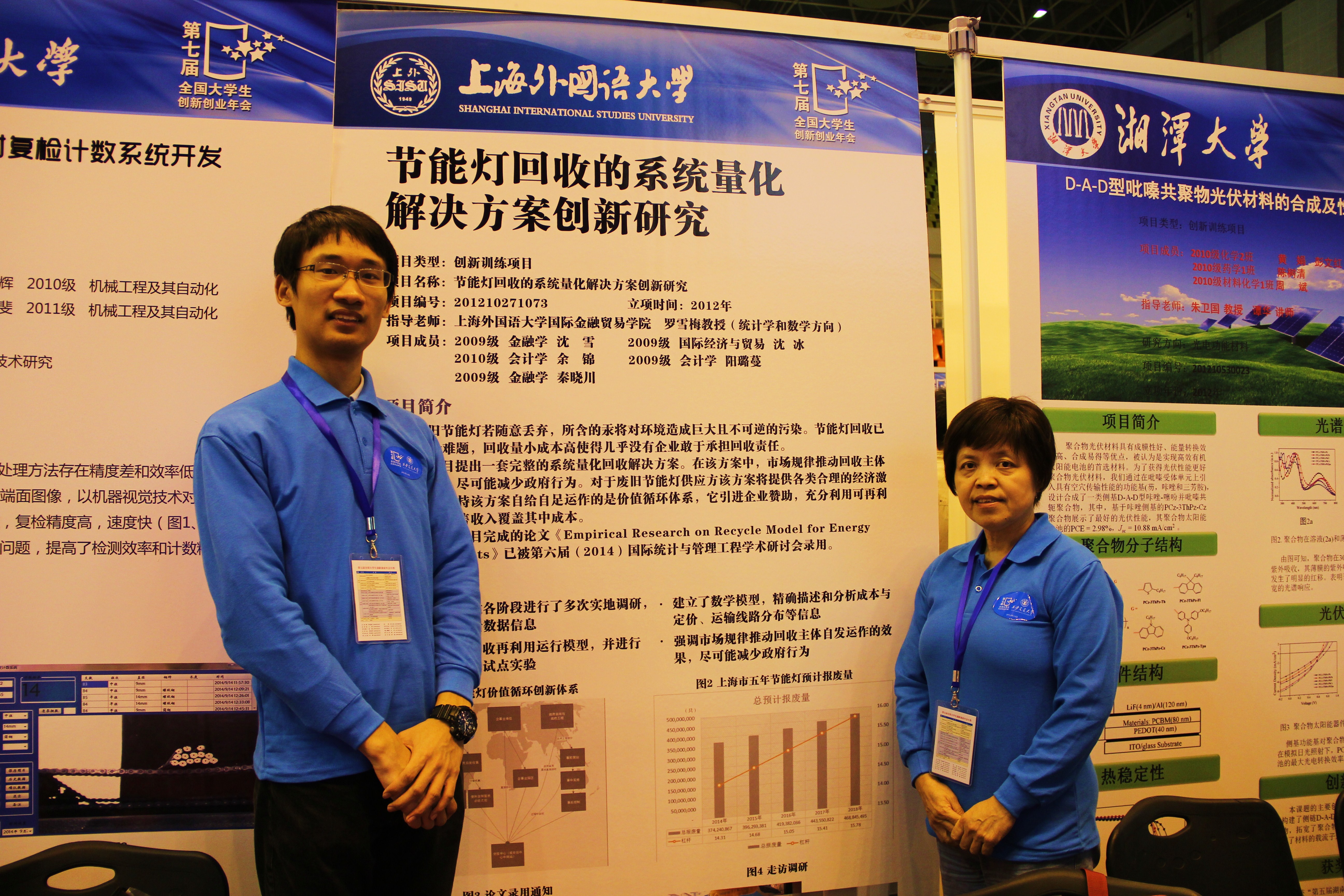 此次入选的《节能灯回收的系统量化解决方案创新研究》项目(项目编号201210271073)是我校2012年国家级大学生创新训练计划优秀项目,由国际金融贸易学院罗雪梅教授指导,金融学专业沈雪和会计学专业余锦等5名同学共同完成。该项目通过建立数学模型,精确分析成本与定价、最优回收工厂及运输线路的地理分布并结合所收集数据进行了可行性论证和试点实验。项目突出市场规律推动回收主体自发运作的作用,尽可能减少政府行为。项目组成员经过一年多的研究,最终提出了一套完整的节能灯系统量化回收解决方案。依托项目所撰写的英文论文《Empirical Research on Recycle Model for Energy-Saving Lights》已被第六届(2014)国际统计与管理工程学术研讨会录用(论文编号为:GEN1246)。收录拟由澳大利亚Aussino Academic Publishing House正式出版的《第六届(2014)国际统计与管理工程学术研讨会》(英文版),并送CPCI-S或CPCI-SSH检索。