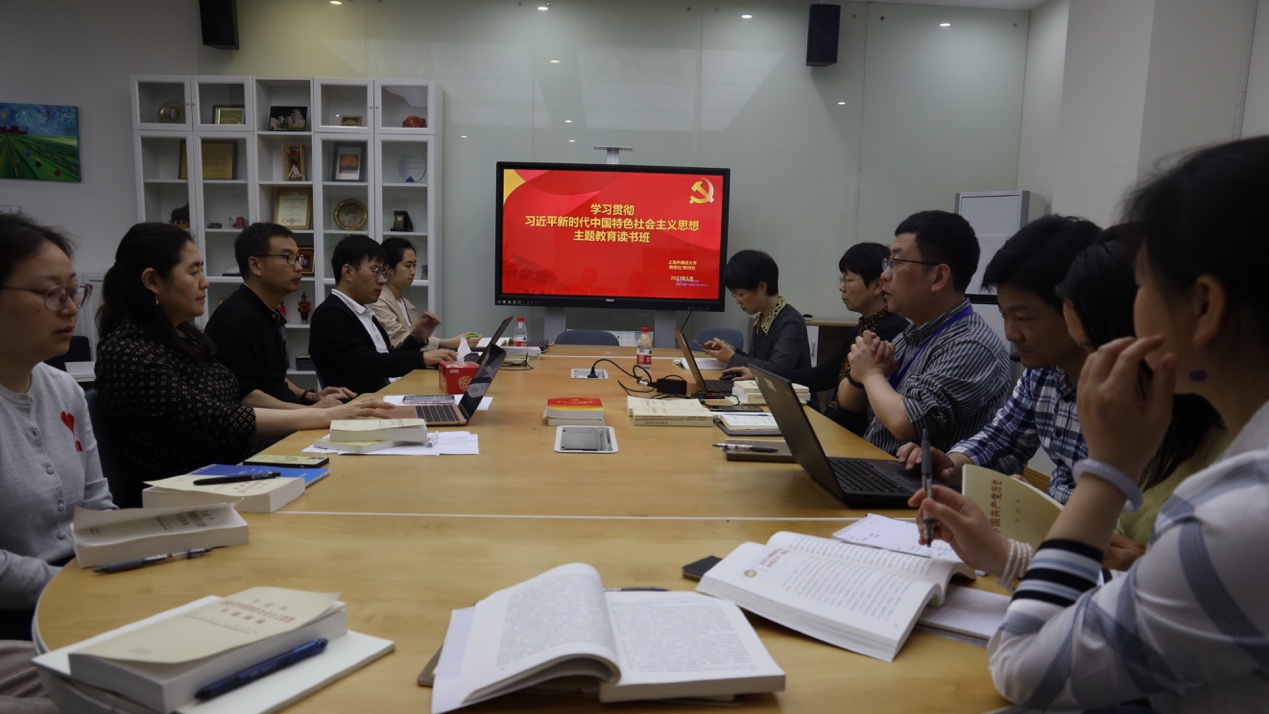 5月5日,中共上海外国语大学机关第十七支部(教务处、教材工作处)举办学习贯彻习近平新时代中国特色社会主义思想主题教育读书班。本次读书班主题是《建设具有强大凝聚力和引领力的社会主义意识形态——新时代教材的使用和建设》,由支部委员王岚领学,教务处、教材工作处全体党员参加学习。读书班由支部副书记徐旻主持。
