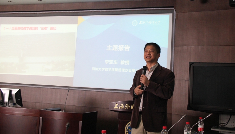 同济大学教学质量管理办公室主任李亚东教授作主题报告,题为《高校教学督导:新使命、新挑战》。李亚东教授梳理了教育评价制度和质量保障机制的发展变化,指出当前高校教学面临“督导难”的问题,他结合同济大学教学督导工作的模式和经验,对上外教学督导工作提出了针对性建议。