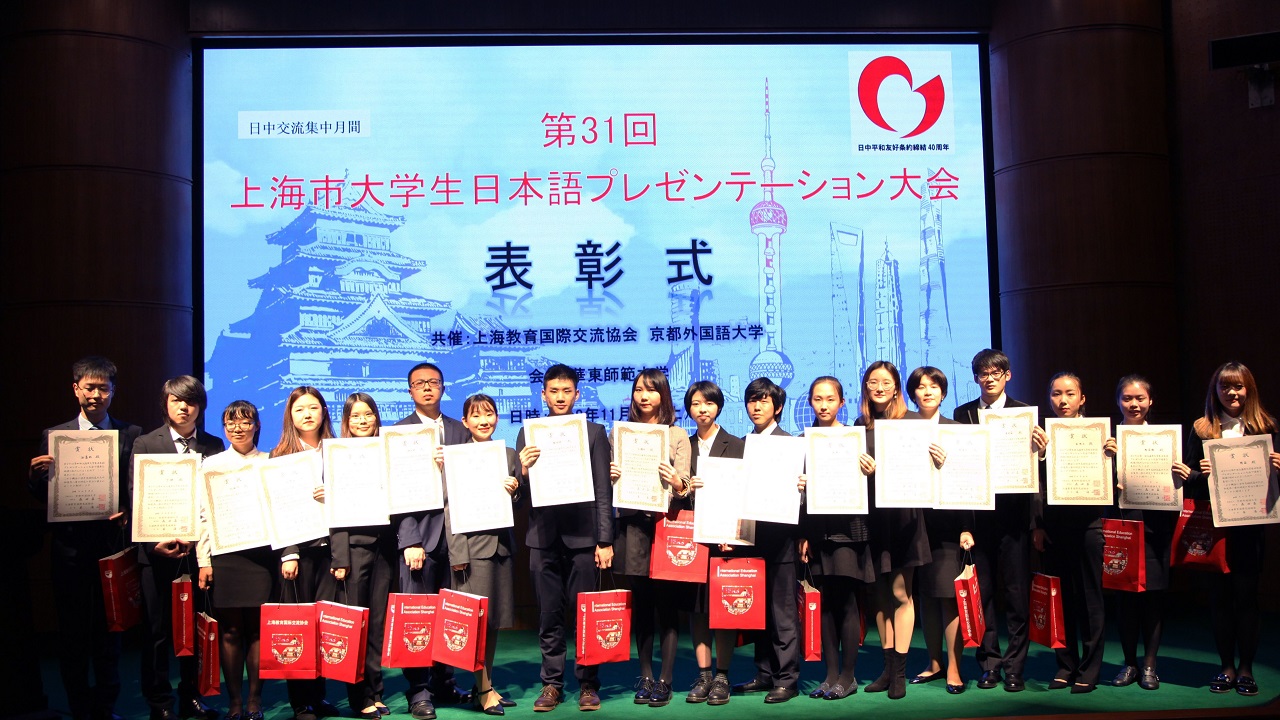 本项赛事由上海教育国际交流协会和日本京都外国语大学共同主办,前身是“上海市大学生日语演讲比赛”,已连续举办30届。今年,赛事升级为“才能演示大赛”,包括上午“即兴命题小论文”和下午“研究课题发表”两大环节,内容更为丰富,能够综合体现选手的实力。来自本市18所高校的选手参与了角逐,最终,上海外国语大学、东华大学、华东理工大学选手分获一二三名,华东师范大学选手获总领事特别奖,主办方将邀请获奖选手于明年春天访问日本关西地区。
