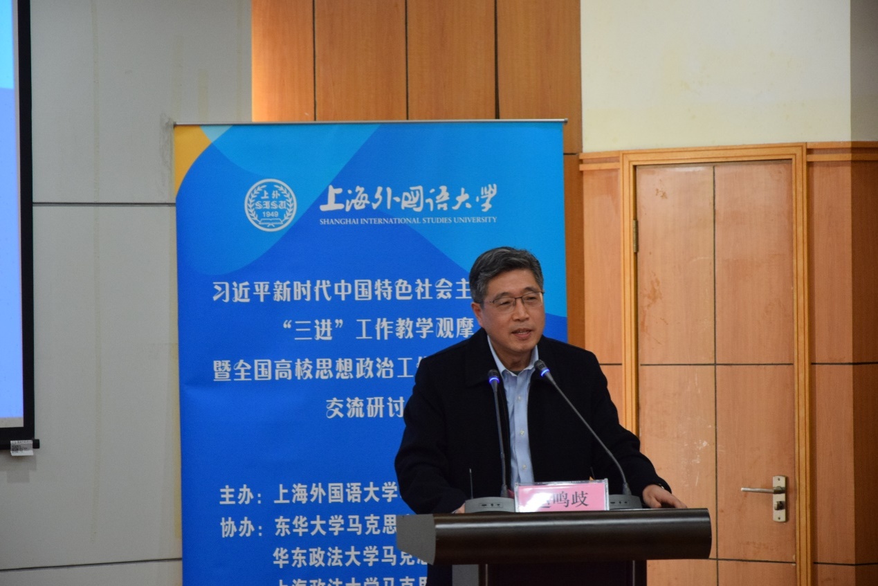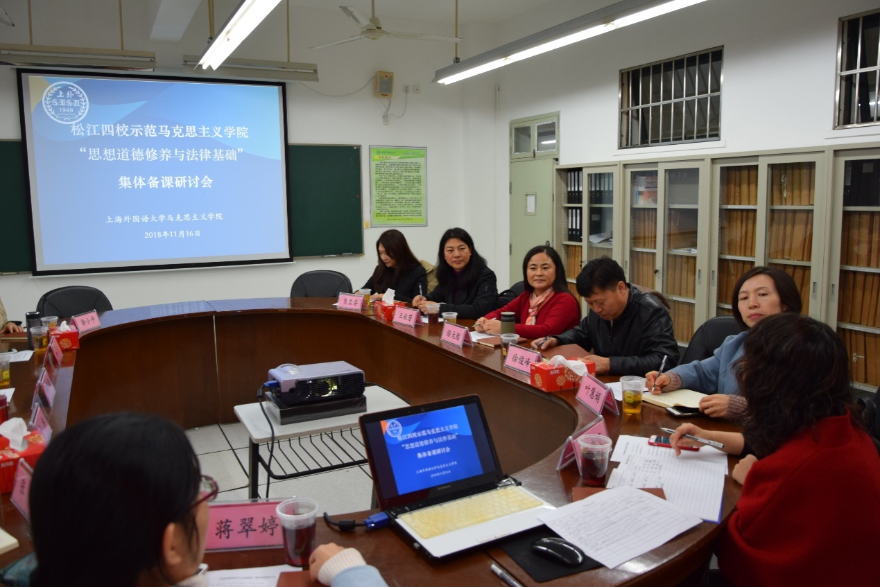 第五、为落实全国高校思想政治工作会议精神,建设好马克思主义学院的课程体系。根据上海外国语大学作为外语类高校的特点,建立完善专题化教学、实践课教学、网络化教学三位一体教学体系。邀请在全国思政网络化教学中成就卓著的南京师范大学马克思主义学院传经送宝。