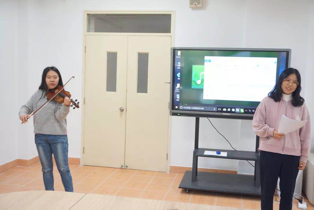 第二组由师雨菲朗诵、崔雪涵小提琴伴奏。师雨菲在乐音的陪伴下轻柔地朗诵了名篇《再别康桥》,离别的愁绪在人声和乐声的缠绵中不断叠加变厚。赵寒旭小组层层递进的细腻声音,将远离父母家乡的惜别之情,对命运的忧虑和恐慌浓缩在《这是四点零八分的北京》中。曹书宁小组的三人朗诵的诗词在和声的《致橡树》中收尾,努力向上的精气神透过层次丰富的合音中激荡升华。《指南录后序》中文天祥面临各种濒死困境的绝望和无奈,生死不渝的爱国情怀在冯源的朗读中娓娓道来,颤抖的声音令人痛心。
