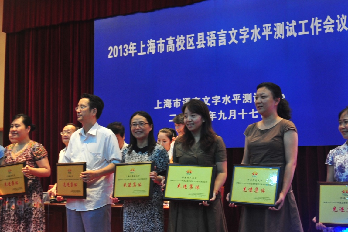 2013年上海市高校区县语言文字水平测试工作会议于9月17日召开,上海市各高校、区县语言文字工作代表参加了会议。我校语委常务副主任、教务处副处长赵美娟作为上海市高校代表发言,以 “积极推进语言文字测试工作,努力提高师生语言能力”为题,与来自全市各高校、区县的语言文字工作者分享了上外在语言文字测试方面的经验。会议还对2011-2012年“上海市语言文字水平测试工作先进集体和先进个人”进行了表彰。我校荣获“上海市语言文字水平测试工作先进集体”称号,赵秋艳同志荣获“上海市语言文字水平测试工作先进个人”称号。 据统计,在普通话水平测试全面推进机考的5年中,我校学生的达标率有四年居全市各高校之首,仅一年居第二。