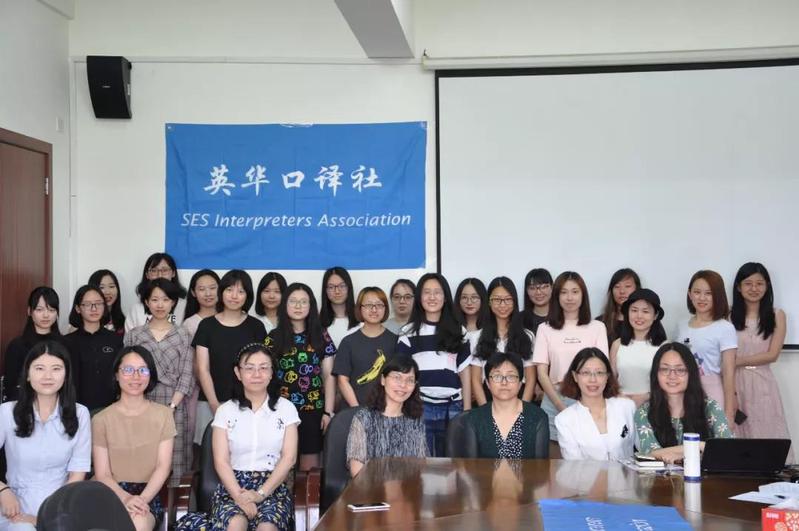 去年,在学校政策的鼓励和支持下,英语学院掀起一波建设学术性社团的风潮,以此为契机,赵璧老师牵头成立了英华口译社。当时正赶上第七届全国口译大赛报名,赵璧老师联合其他几位从事口译教学的老师鼓励学生们积极参加比赛,并以通过初赛和复赛的学生为基础招到了第一批新社员。