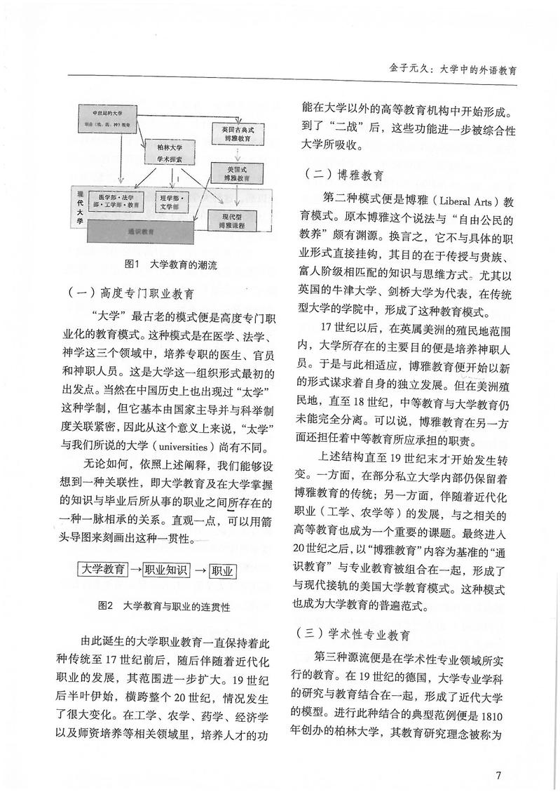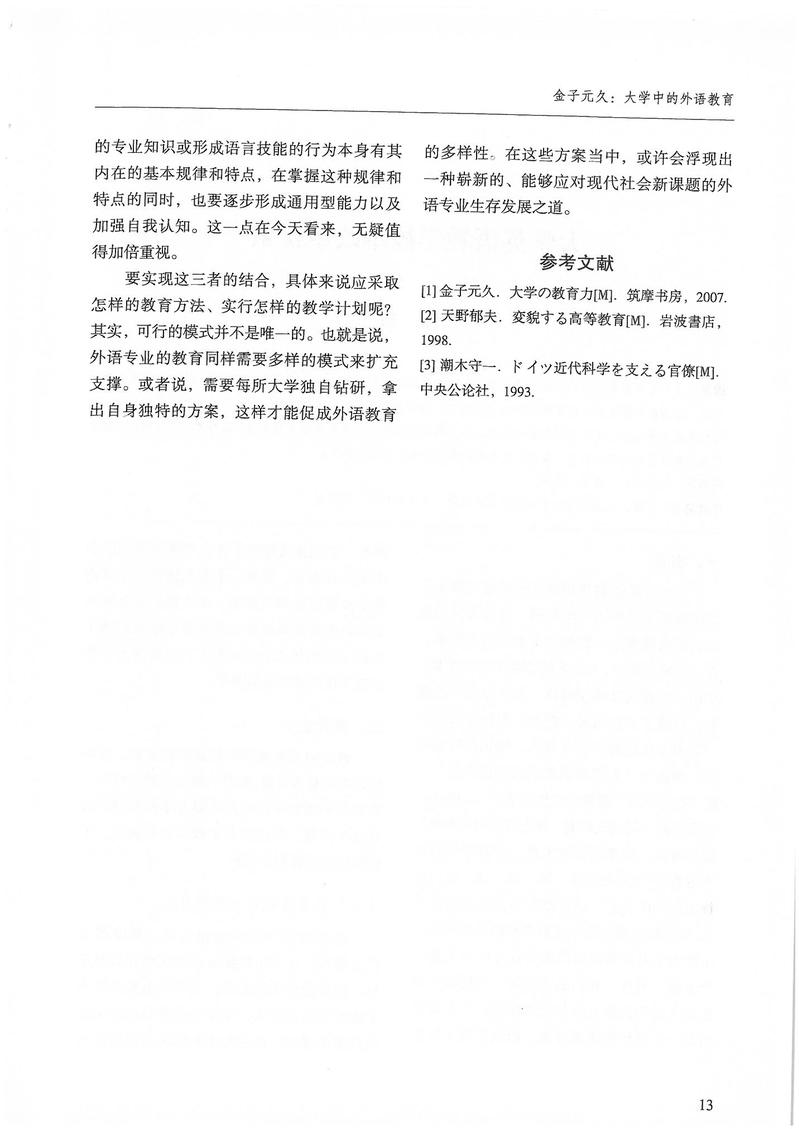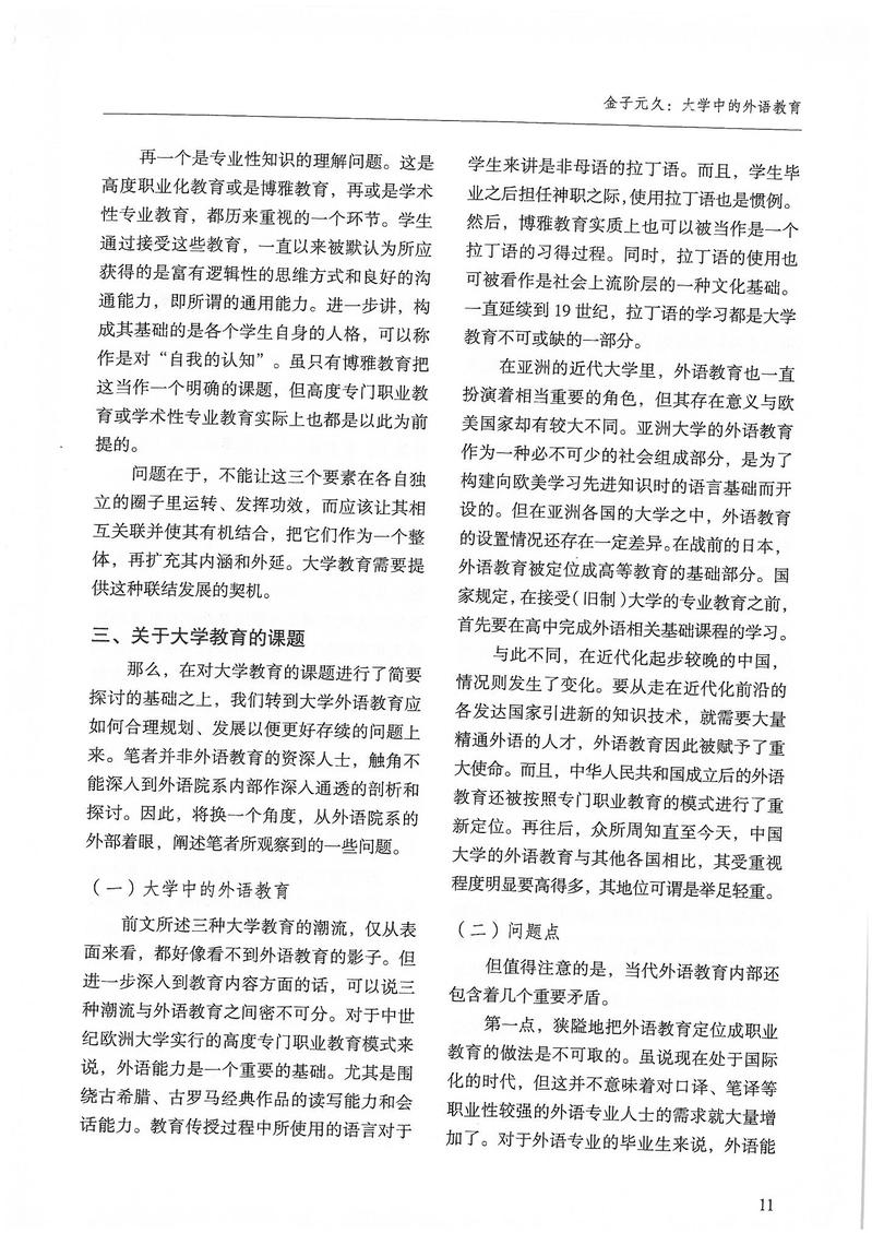 金子元久:大学中的外语教育