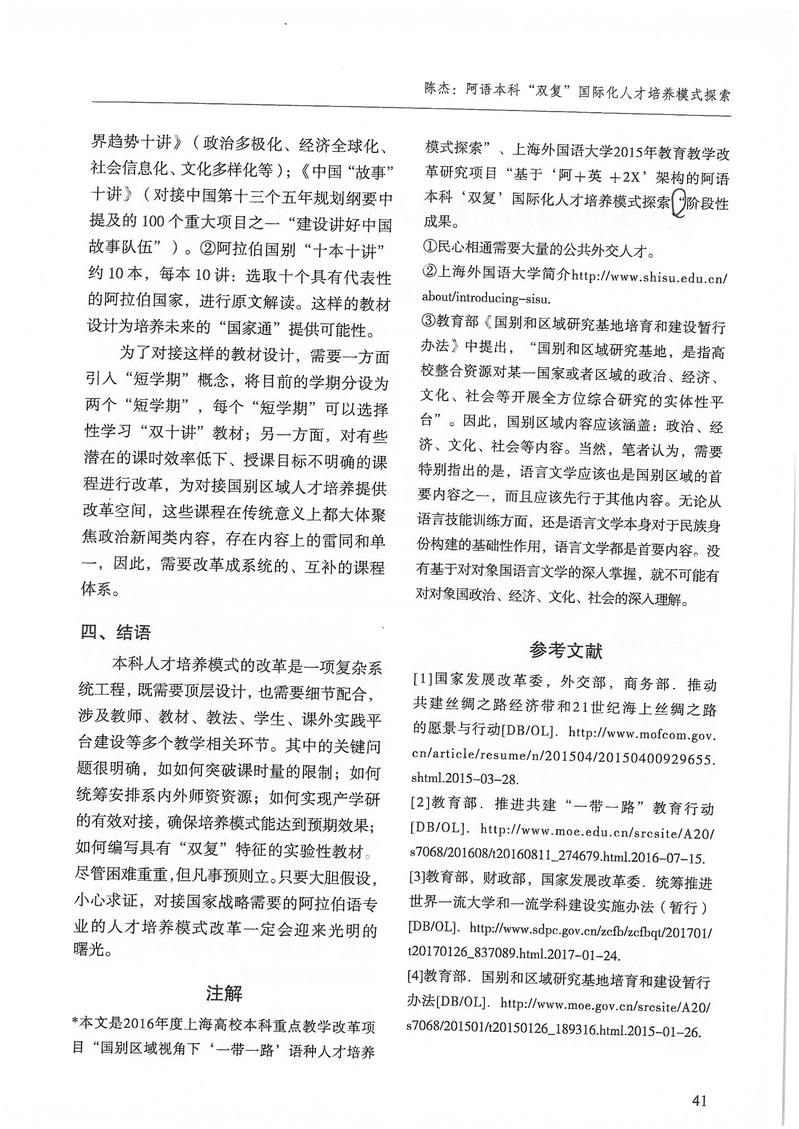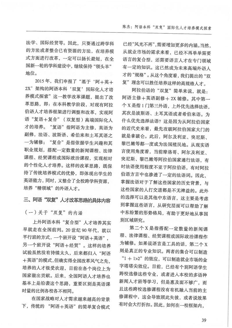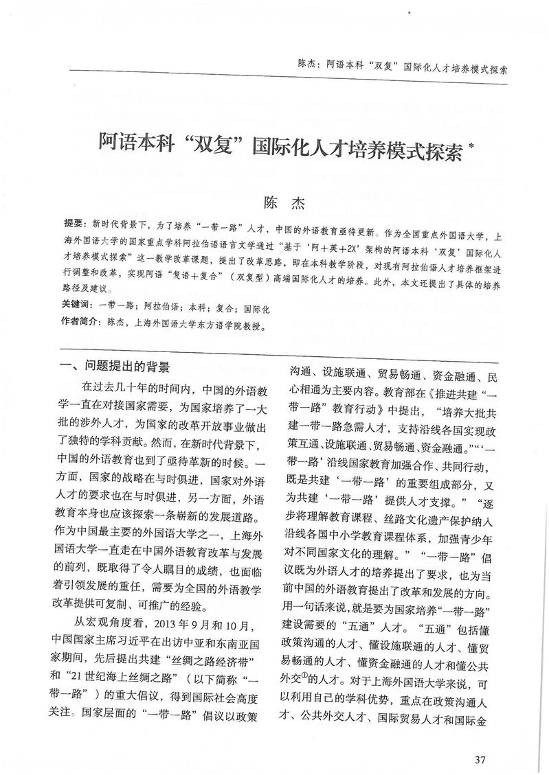 陈杰:阿语本科“双复”国际化人才培养模式探索
