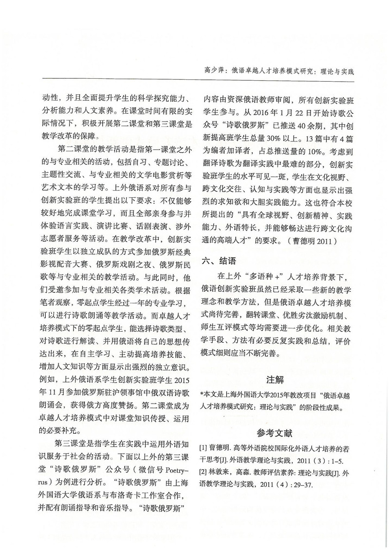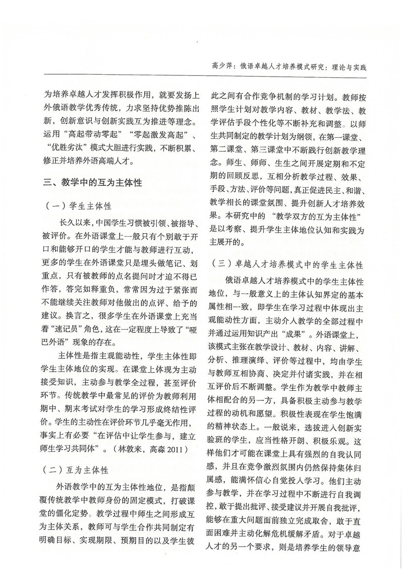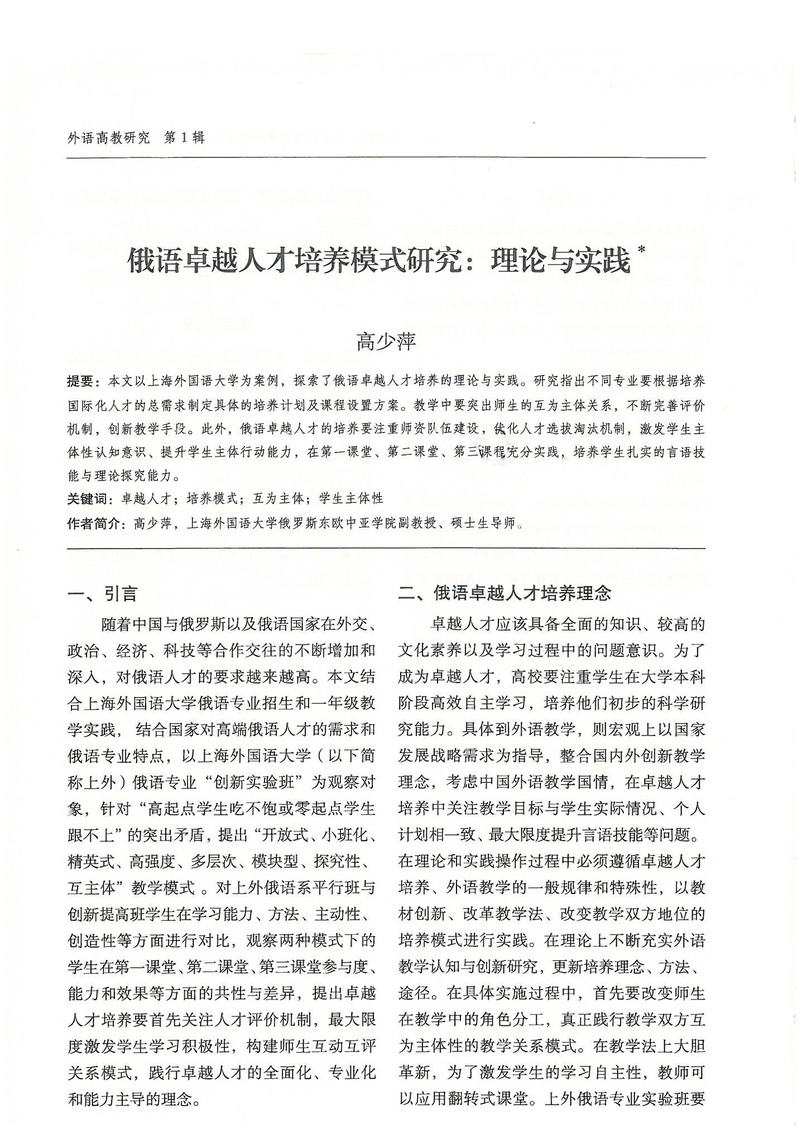 高少萍:俄语卓越人才培养模式研究:理论与实践