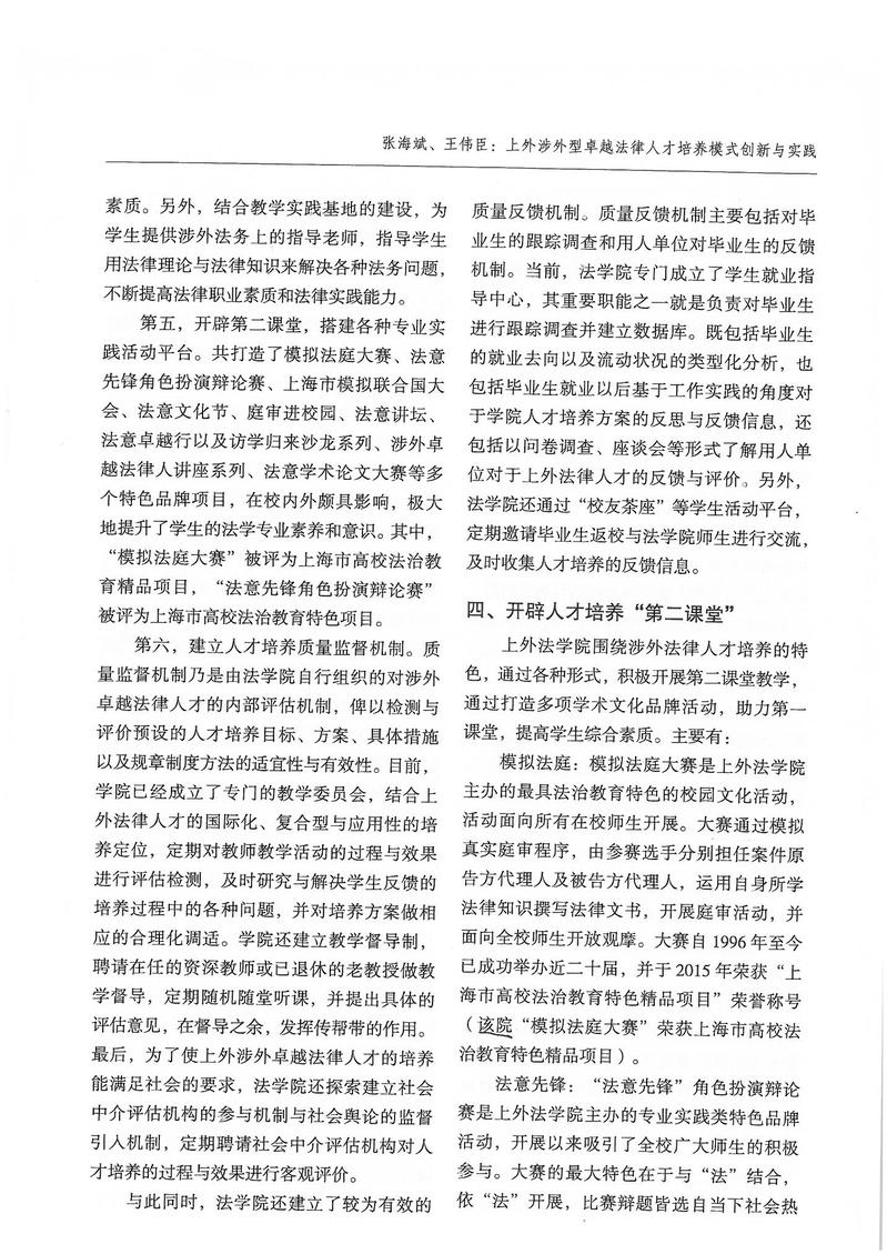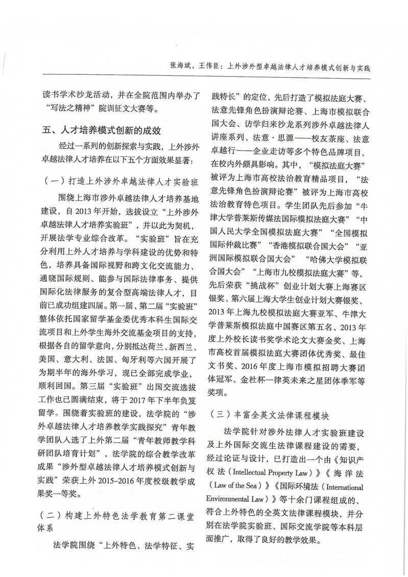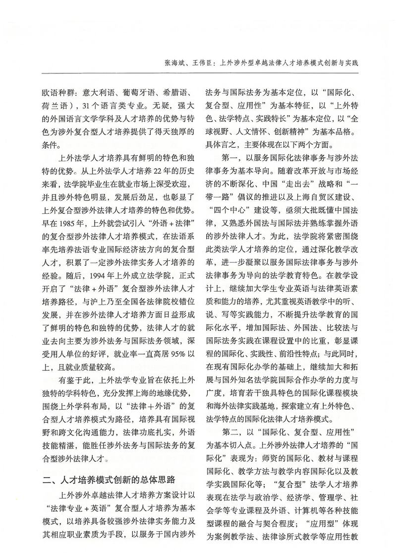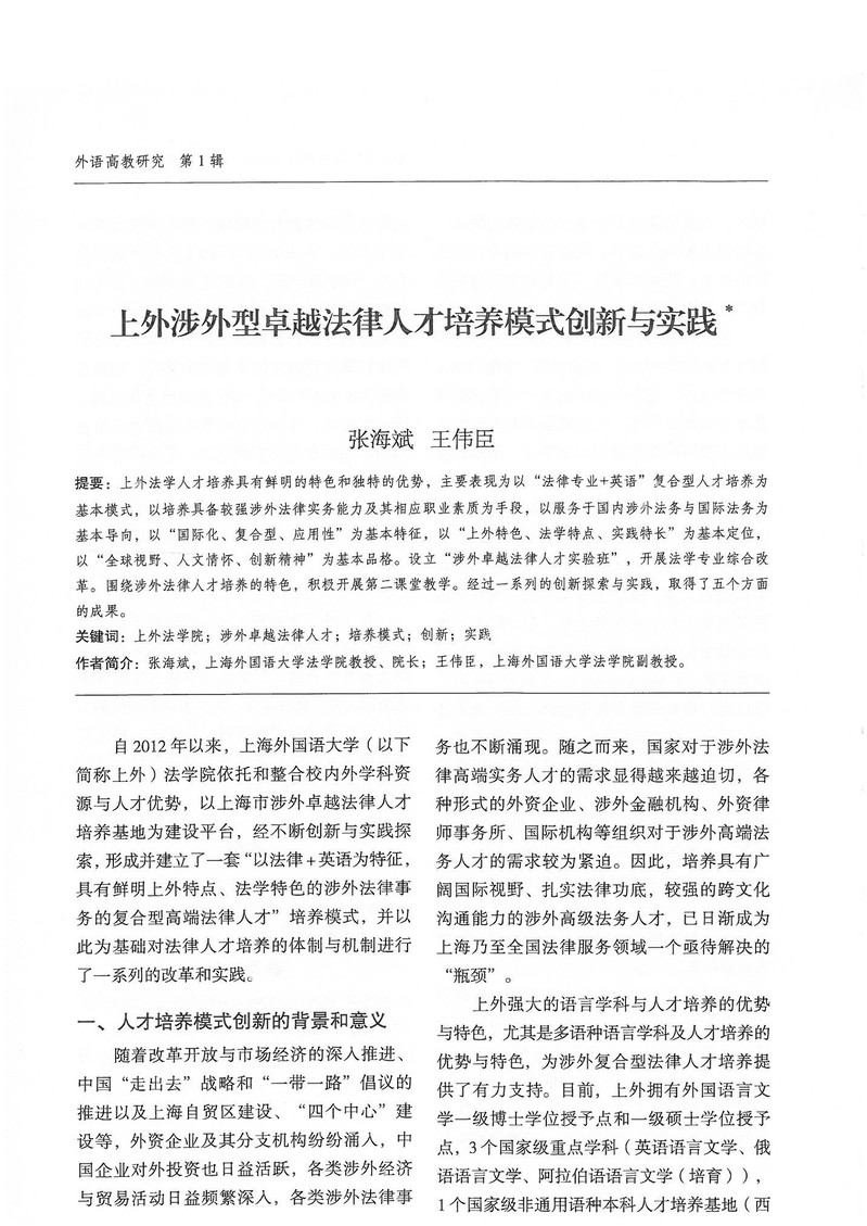 张海斌、王伟臣:上外涉外型卓越法律人才培养模式创新与实践