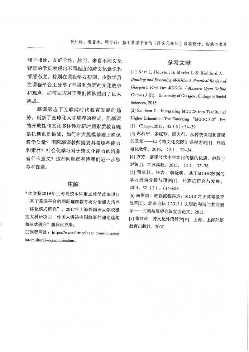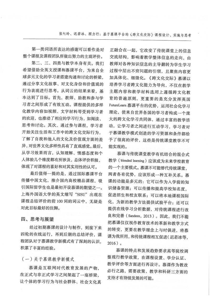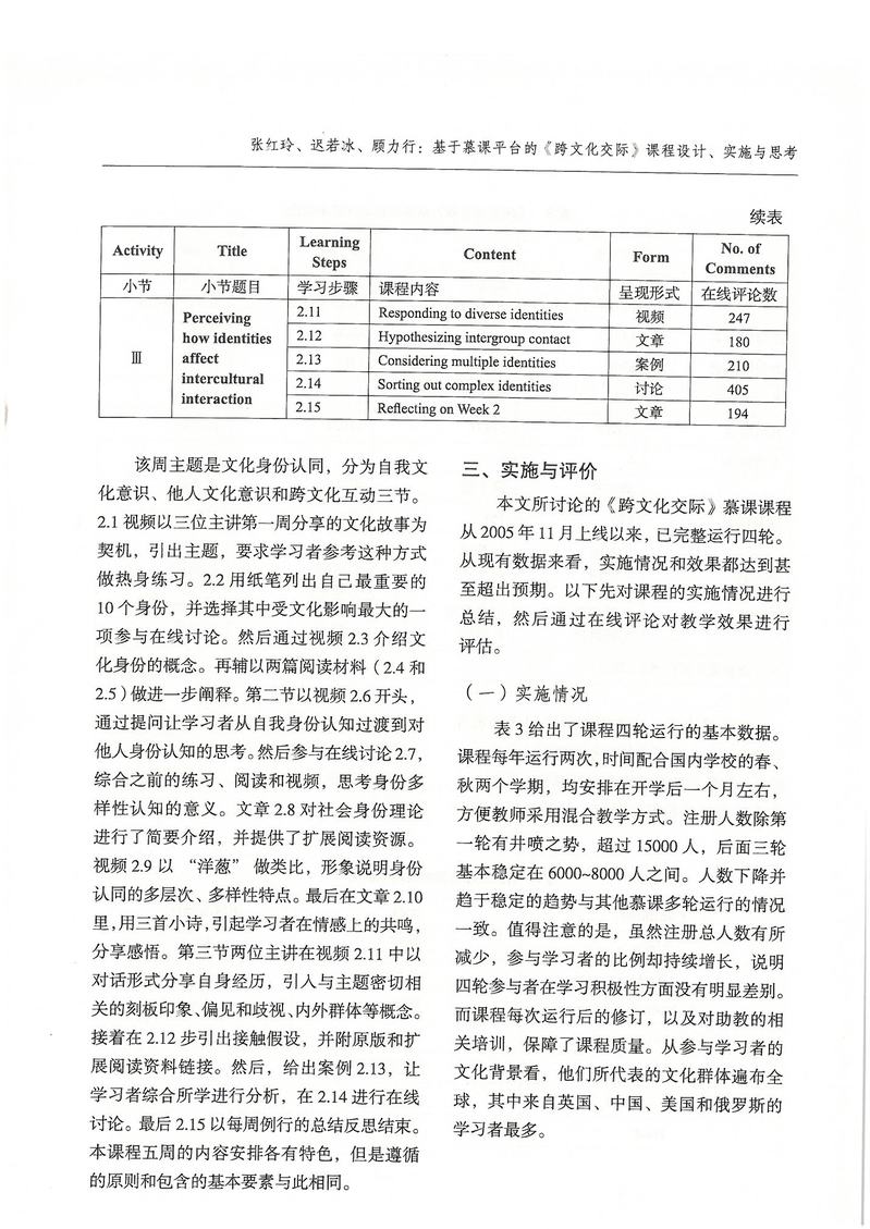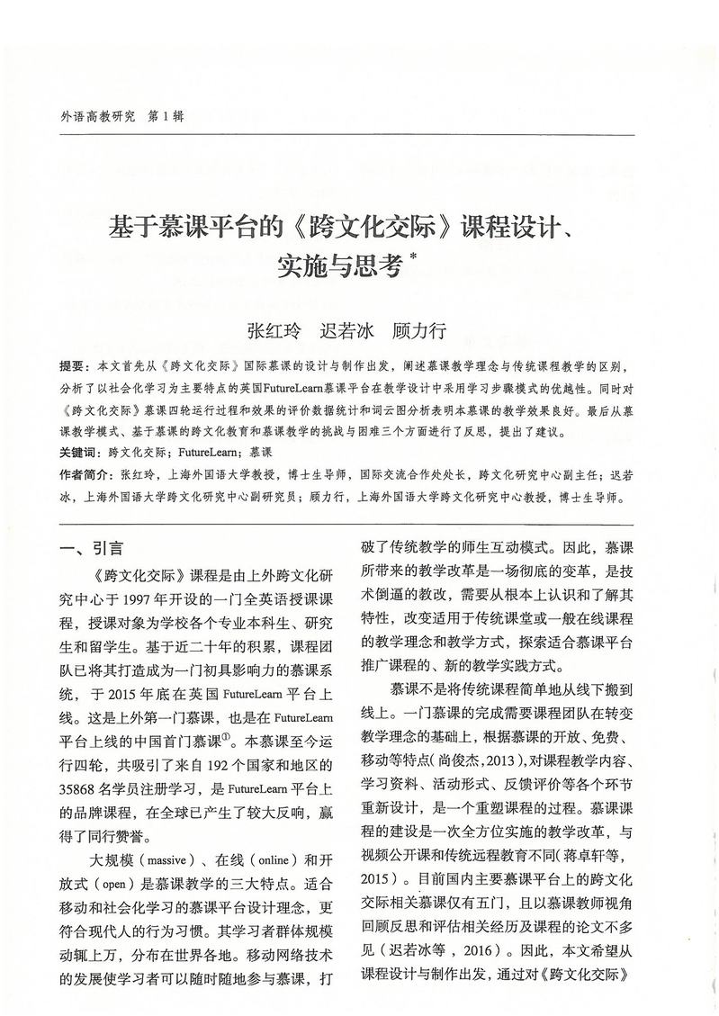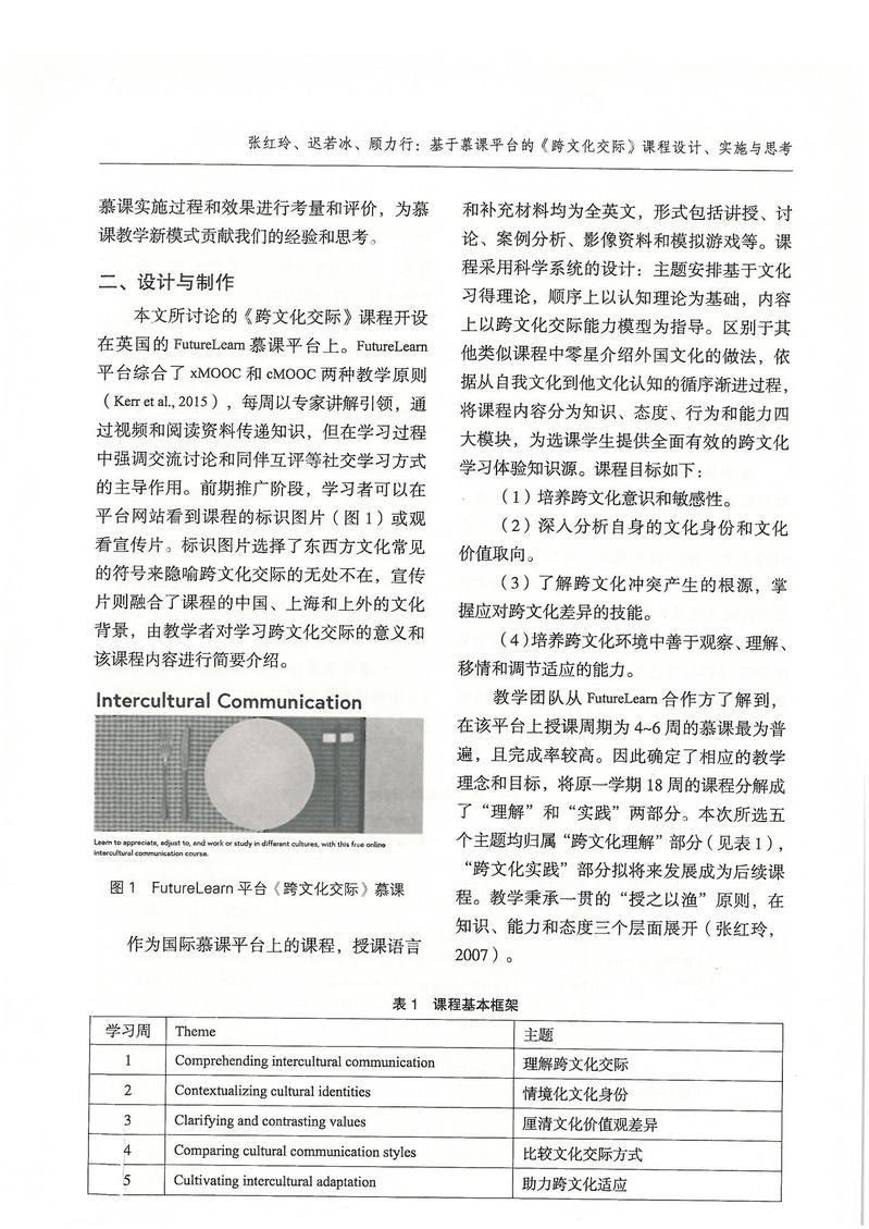 张红玲、迟若冰、顾力行:基于慕课平台的《跨文化交际》课程设计、实施与思考