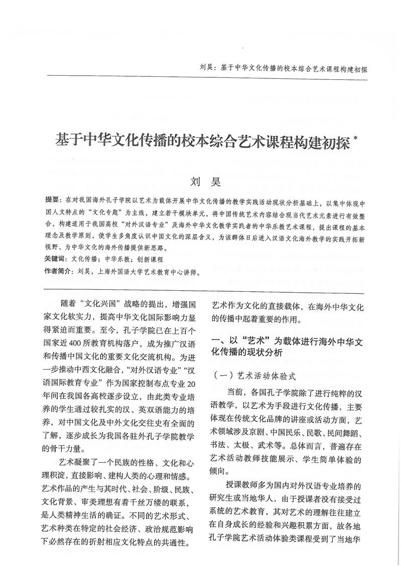 刘昊:基于中华文化传播的校本综合艺术课程构建初探