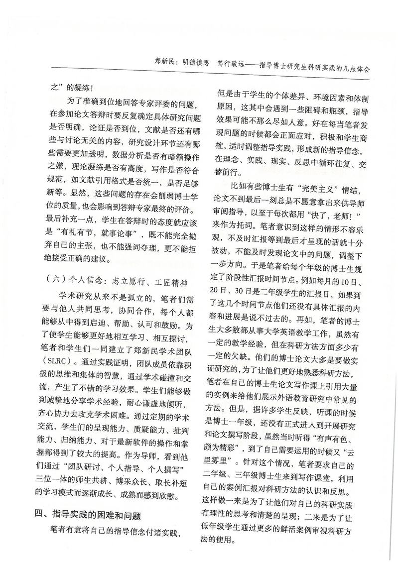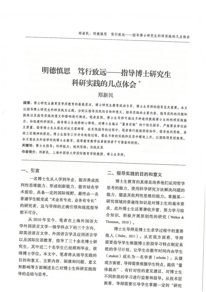 郑新民:明德慎思 笃行致远——指导博士研究生科研实践的几点体会