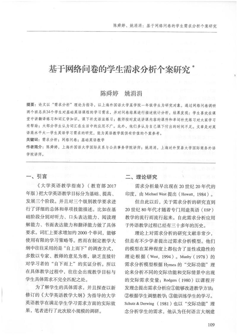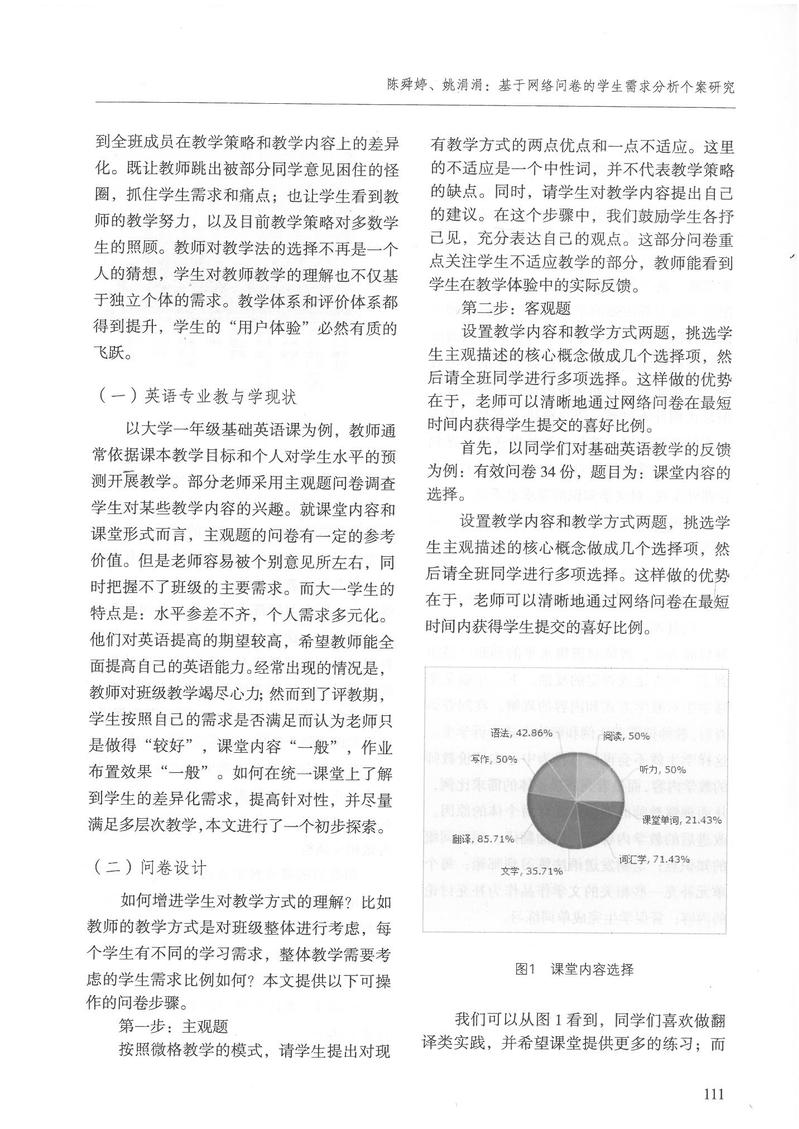 陈舜婷、姚涓涓:基于网络问卷的学生需求分析个案研究