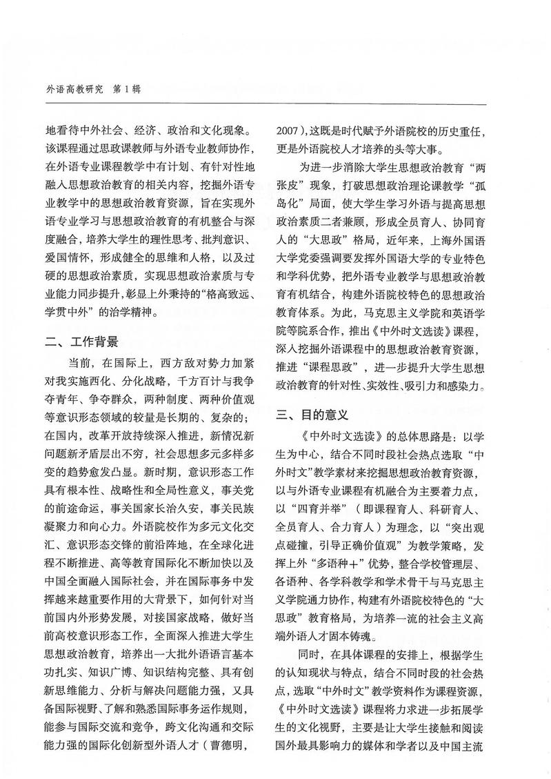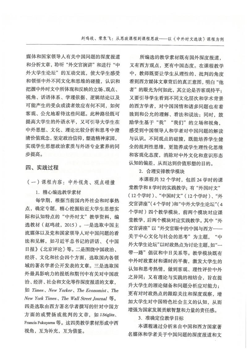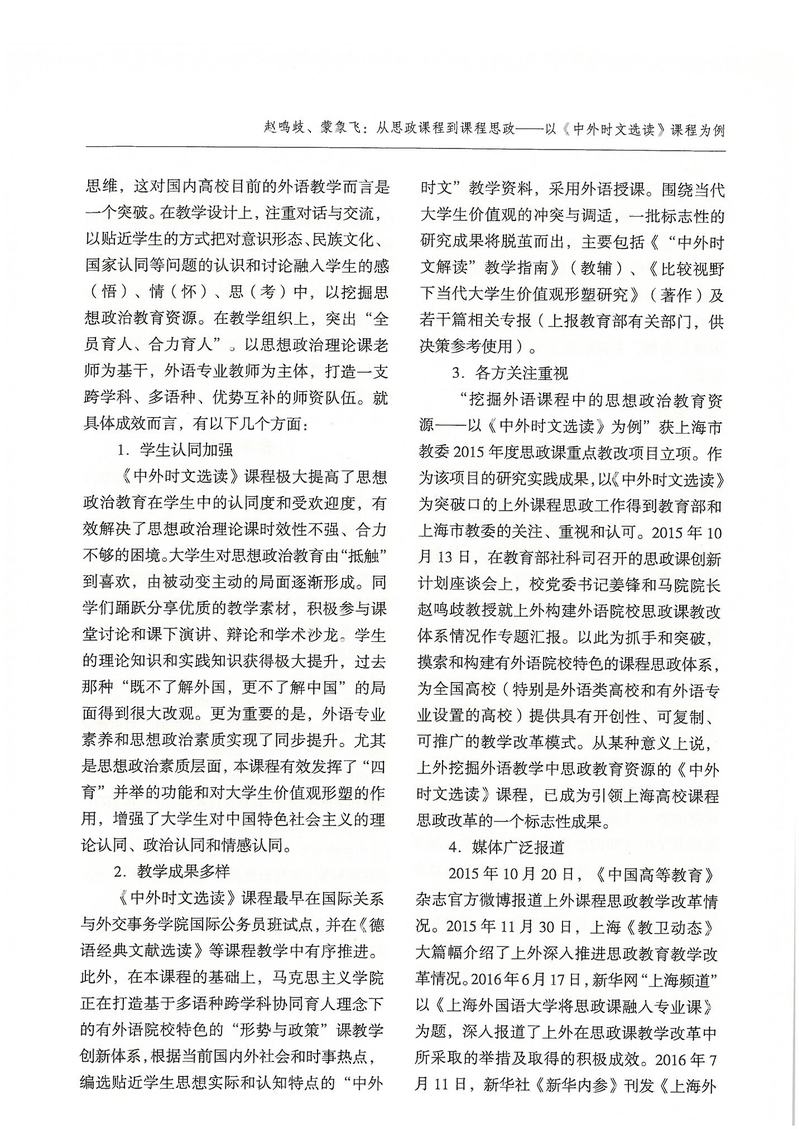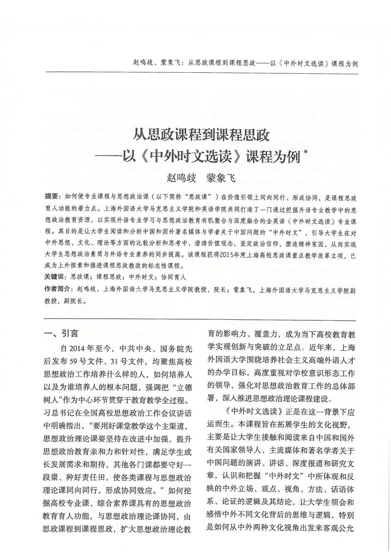 赵鸣歧、蒙象飞:从思政课程到课程思政——以《中外时文选读》课程为例